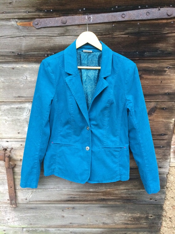 Turkis Blau Damen Cord Jacke Knopfe Bis Klassische Blazer Etsy