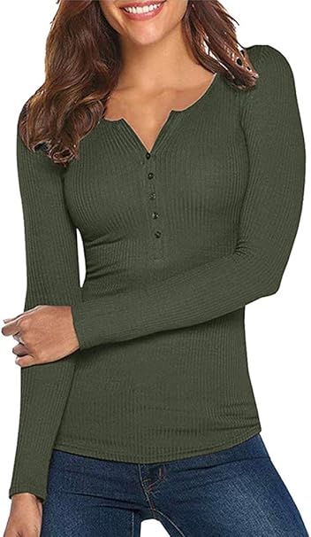 Ybenlover Damen V Ausschnitt Henley T Shirts Langarm Geripp Knopf Basic Oberteile Tee Amazon De Bekleidung