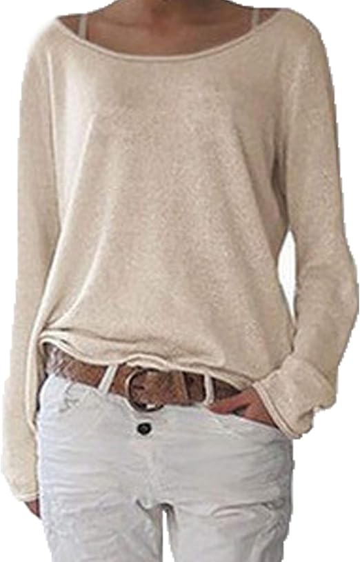 Damen Langarm T Shirt Rundhals Ausschnitt Lose Bluse Hemd Pullover Oversize Sweatshirt Oberteil Tops Amazon De Bekleidung