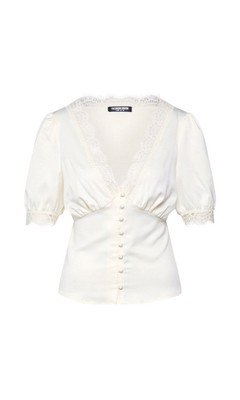 Prima Weisses Oberteil Aus Seide Mit Weiten Armeln Und Einsatzen Aus Spitze