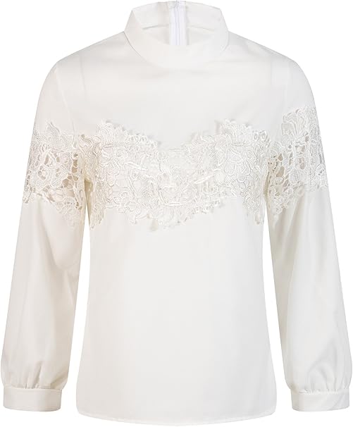 Damen Bluse Longra Damen Chiffon Bluse Spitzen Hemdbluse Tunika Blusen Frauen Festliche Chiffonshirt Langarmshirt Weisse Bluse Mit Spitze Party Oberteile Tops Amazon De Bekleidung