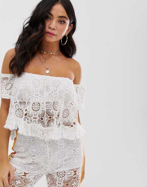 White Cabana Weisses Kurzes Oberteil Mit Spitze Und Regenbogenstreifen Kombiteil Asos