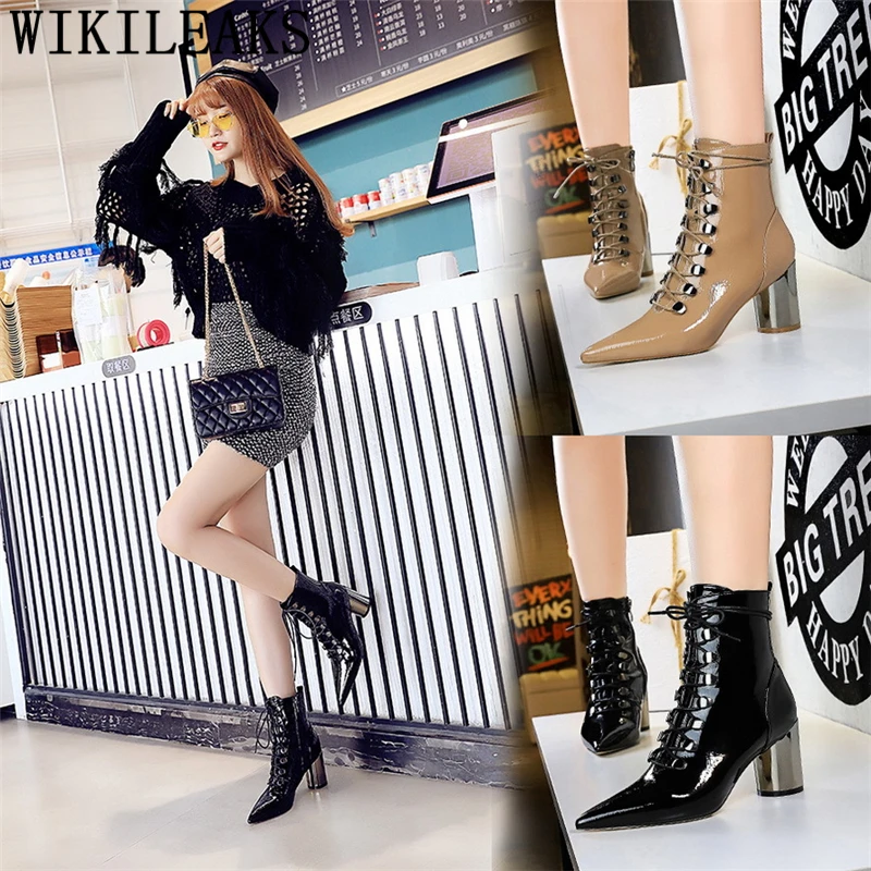 Lace Up Boots Black Leather Boots Women Biker Boots Women Fashion High Heels Stiefeletten Damen Chaussures Femme Botas De Mujer Ankle Boots Aliexpress