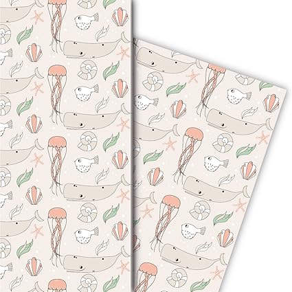 Kartenkaufrausch Handgezeichnetes Meeres Geschenkpapier Set 4 Bogen Dekorpapier Mit Quallen Nautilus Und Walfischen Beige Fur Schone Geschenkverpackung Musterpapier Zum Basteln 32 X 48cm Amazon De Burobedarf Schreibwaren