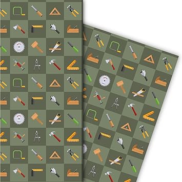 Kartenkaufrausch Handwerker Geschenkpapier Set 4 Bogen Dekorpapier Mit Werkzeugen Auf Schachbrettmuster Fur Schone Geschenkverpackung Musterpapier Zum Basteln 32 X 48cm Amazon De Burobedarf Schreibwaren