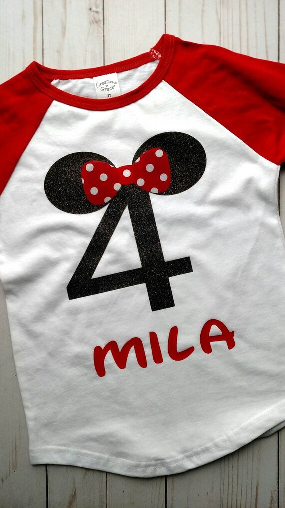 Tshirt with glittery birthday checklist graphic and Minnie Mouse graphic with 3D bow. Matching Disney Family Birthday Boy Tshirts Mickey Minnie Mouse Birthday Girl Disney Inspired Matching Birthday Shirts 48 out of 5 stars 21 $1999 $ 19 99. Custom happy birthday Minnie mouse shirt with small hot pink bow Personalized in Disney font with your child's name and age Cute boutique applique design, perfect for any Minnie fan birthday theme party Or wearing on a special Disney trip Details SKU SKU Our price $ 2699.