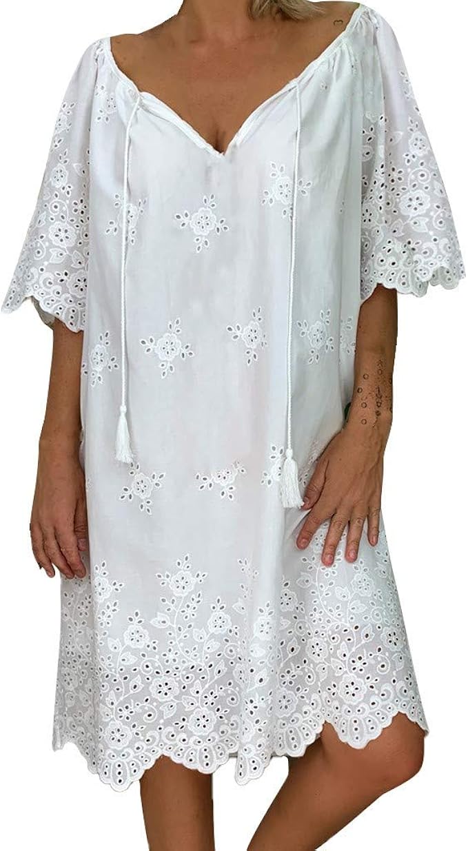Eucoo Kleid Mit Tragern Grosse Grosse Weiss Spitze V Ausschnitt Damenkleid Gerade Tunika Bluse Ample Chic Sommer Armelloses Hemd Lassiges Sommerkleid Minikleid Gr 44 Weiss Amazon De Bekleidung