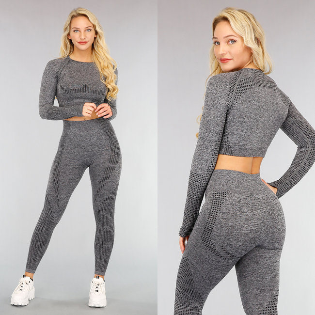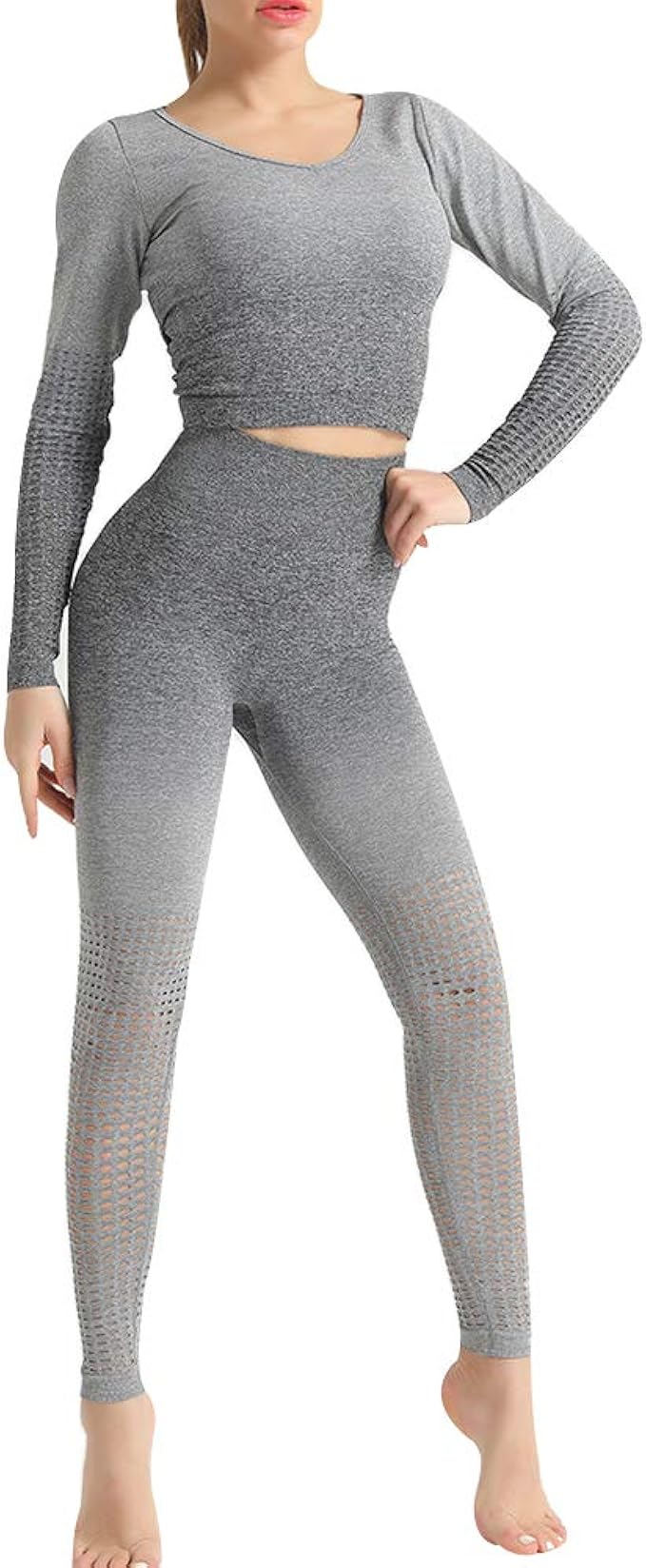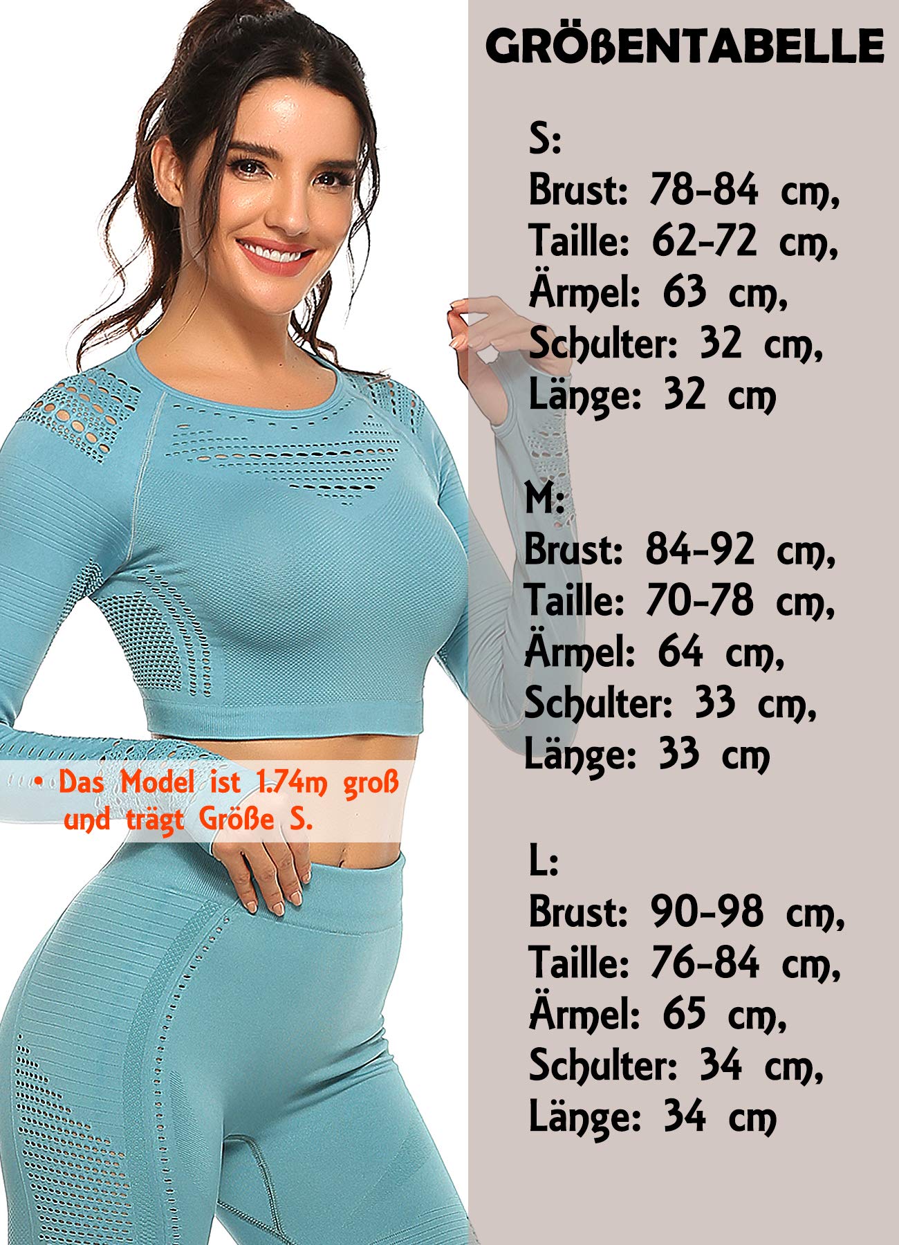 Fitness Kleidung Damen Yoga Leggings Kurz Sport Oberteil Langarm Bauchfrei