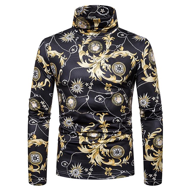 Herrn Blumen Einfarbig T Shirt Langarm Sport Oberteile Grundlegend Elegant Schwarz