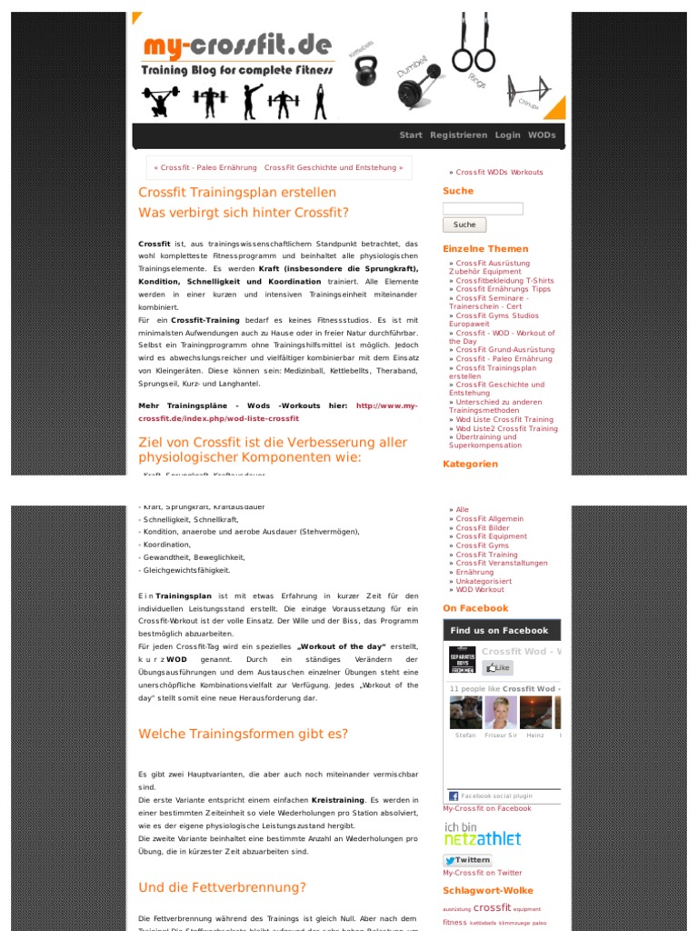 Hier könnt ihr eure Trainingspläne posten und über die verschiedenen Trainingssysteme diskutieren Moderator Team Bodybuilding & Training 6 Beiträge • Seite 1 von 1 Fuppel TA Member Beiträge 231 Registriert 04 Feb 13 09 TP nach Reg Park von Fuppel » 23 Mär 13 1153. Crossfit Trainingspläne wie Filthy Fifty, Cindy, Angie und Murph plus Vorteile zum CrossfitWorkout Der Crossfit Trainingsplan für Anfänger mit den besten Übungen für zu Hause oder bei dir in der Box powered von unseren Crossfit Experten CrossFinest Trier. Die folgenden zwei Trainingspläne bieten Ihnen die Möglichkeit Crossfit sowohl zuhause oder in Ihrem Sportstudio auszuprobieren Bevor Sie starten, sollten Sie jedoch ein paar Dinge beachten Das Wort „Anfänger“ bezieht sich auf Sportler, die noch keine Erfahrung mit Crossfit haben.