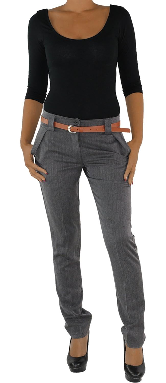 Damen Business Hose Mit Gurtel Hufthose Stoffhose Elegant Classic Stretch 1r