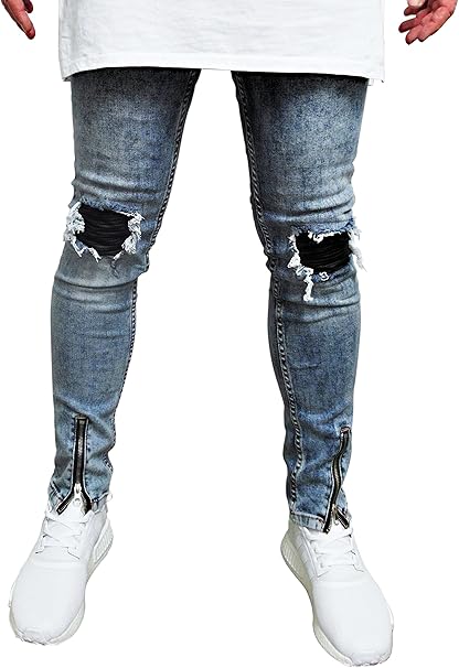 Pizoff Herren Superenge Skinny Jeans Mit Rissen An Den Knien Amazon De Bekleidung