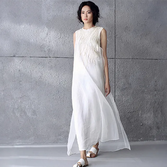 Neue Baumwolle Leinen Kleid Frauen Sommer Stickerei Organza Maxi Lange Tank Kleid Vintage Sommerkleid Robe Weiss Strand Kleider C3445 Linen Dresses Women Linen Dresscotton Linen Dress Aliexpress