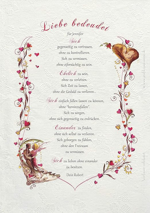 Ob für den Liebsten oder die Angebetete, zum Hochzeitstag, Valentinstag, für die Einladung zur Hochzeit oder einfach so Ein schönes Liebesgedicht lässt Herzen höher schlagen Diese Seiten von Spruchcom interessieren Sie vielleicht Liebeskummer Sprüche rund ums Vermissen Liebessprüche. Der Hochzeitstag gilt als einer der schönsten und fröhlichsten e im Leben Es wird gefeiert, getanzt und gelacht Wenn Sie dem frisch verheirateten Brautpaar ein schönes Gedicht zur Hochzeit widmen möchten, dann passen Sie dieses ruhig ein wenig der Umgebung an – das heißt, wählen Sie amüsante, humorvolle Worte, welche die. Ob für den Liebsten oder die Angebetete, zum Hochzeitstag, Valentinstag, für die Einladung zur Hochzeit oder einfach so Ein schönes Liebesgedicht lässt Herzen höher schlagen Diese Seiten von Spruchcom interessieren Sie vielleicht Liebeskummer Sprüche rund ums Vermissen Liebessprüche.
