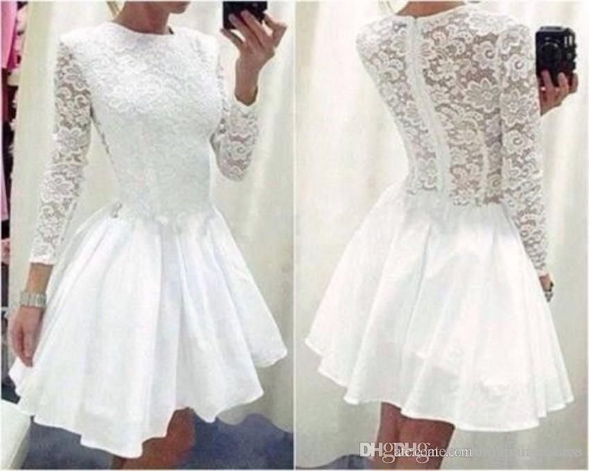 Grosshandel Kleine Weisse Kleider Mit Juwelen Ausschnitt Lange Armel Elegantes Kurzes Spitze Brautkleid Plus Size A Line Homecoming Kleider Von Sweetlovedress 57 81 Auf De Dhgate Com Dhgate