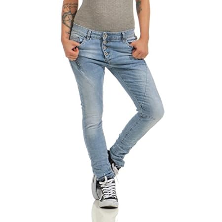 Jewelly Damen Jeans Hose Baggy Knopfe Boyfriend Coole Knopfleiste Stretch L 40 Ebay