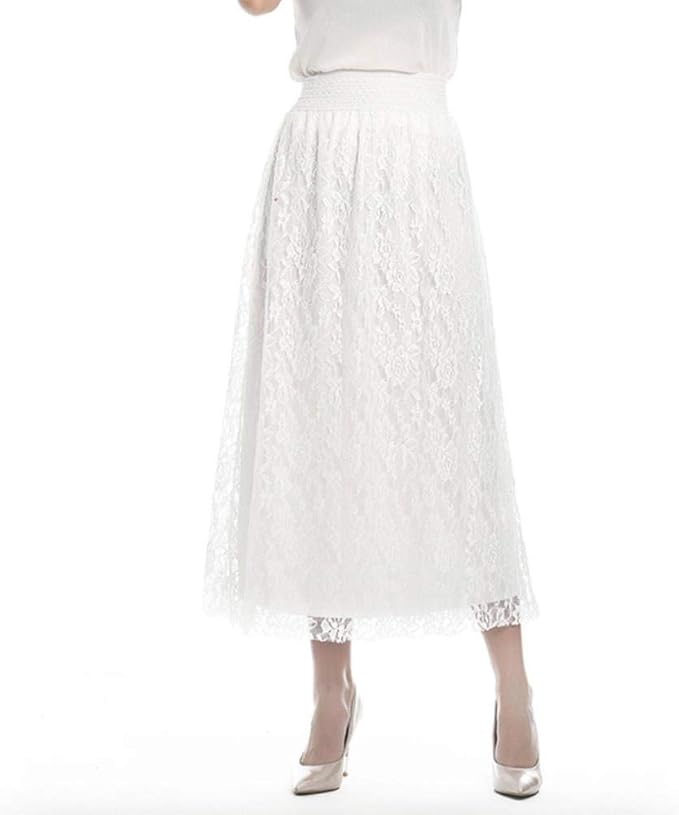 Minetom Damen Retro Elegant Rock Knielang Spitze Rock Knielang Kleid Midi Rock Weiss Amazon De Bekleidung