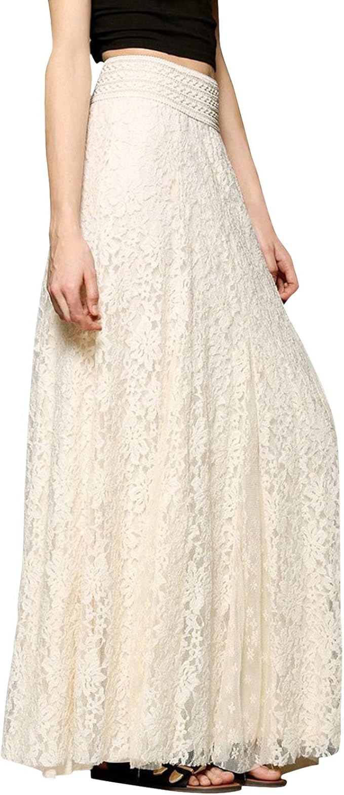 Laemilia Damen Rock Lang Maxirock Mit Spitze Elegant Blumenspitze Hohe Taille Rocke Schwarz Weiss Beige A Line Plisserock Amazon De Bekleidung