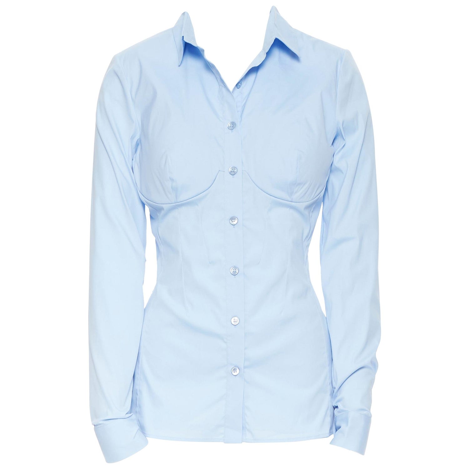New La Perla Ss17 Runway Corset Bustier Light Blue Stretch Cotton Shirt It42 B For Sale At 1stdibs