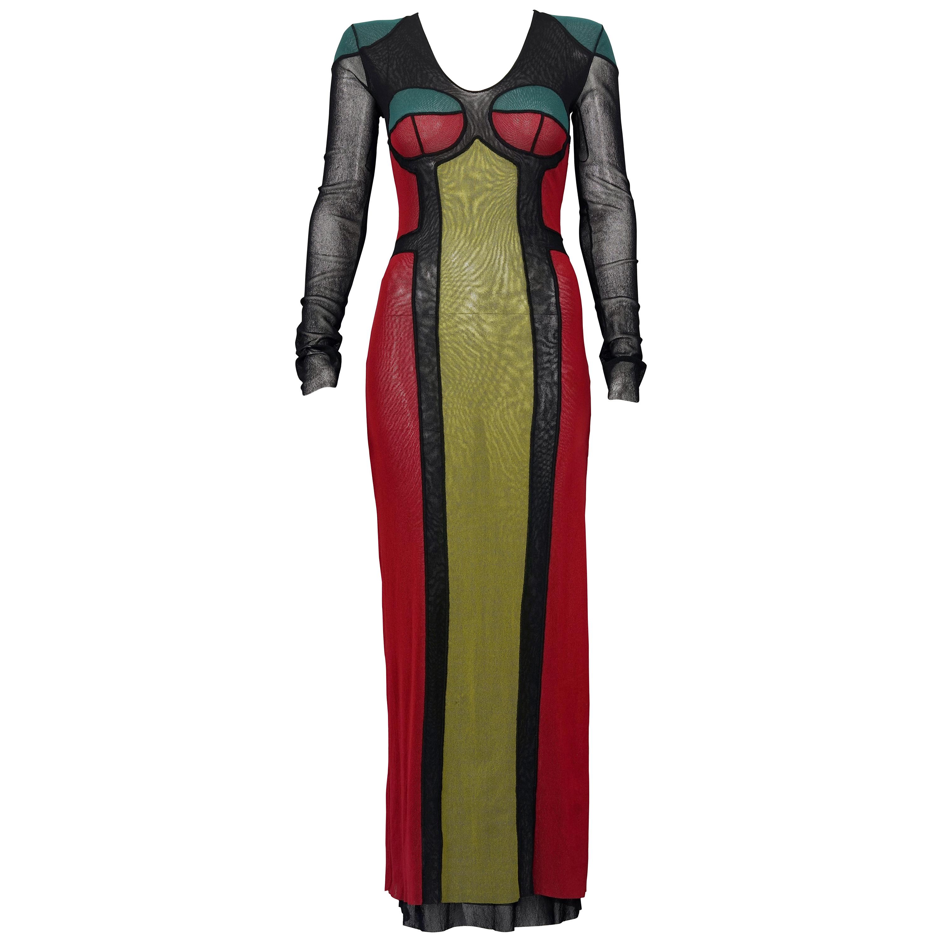Vintage Jean Paul Gaultier Color Block Bustier Illusion Mesh Maxi Dress At 1stdibs
