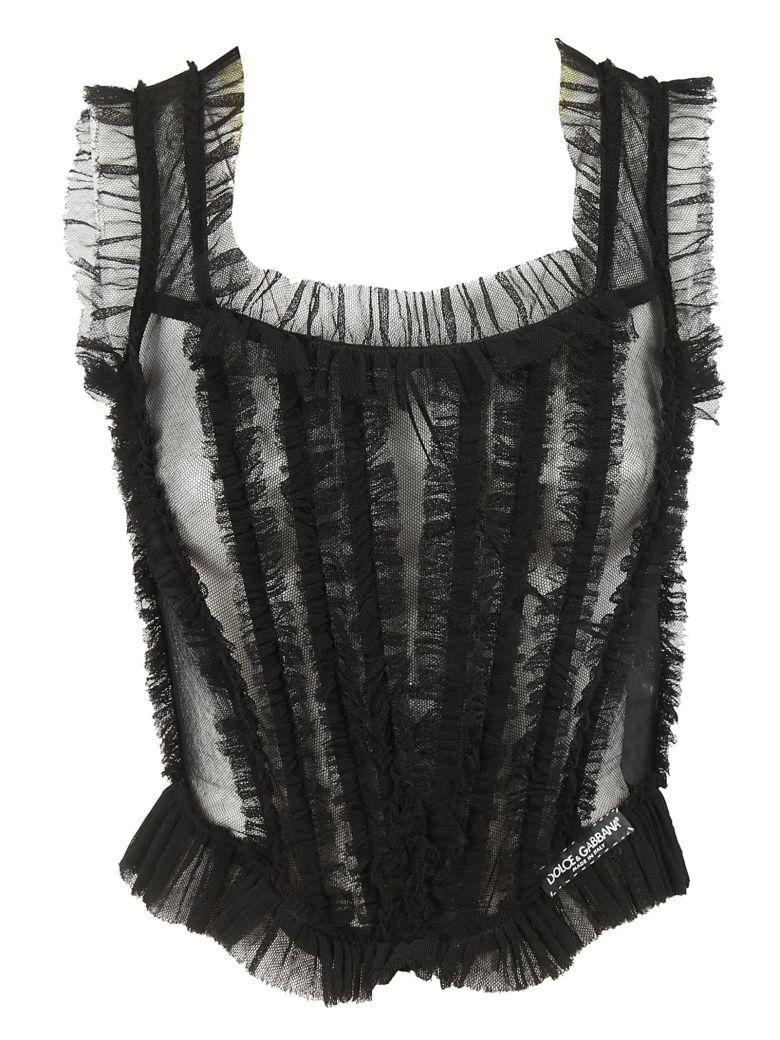 Dolce Gabbana Fringed Bustier Top In Nnero Modesens