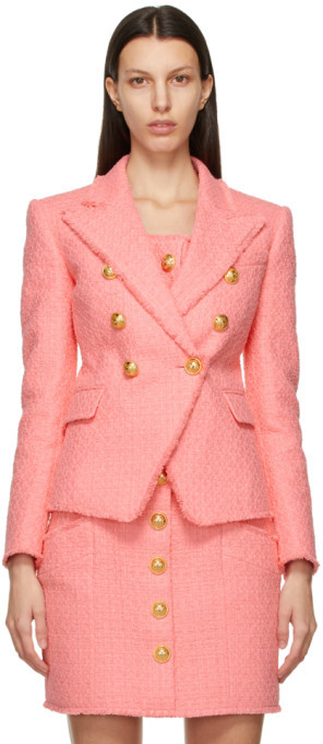 Balmain Light Pink Cotton Blend Tweed Blazer Blazers Rfc1384af