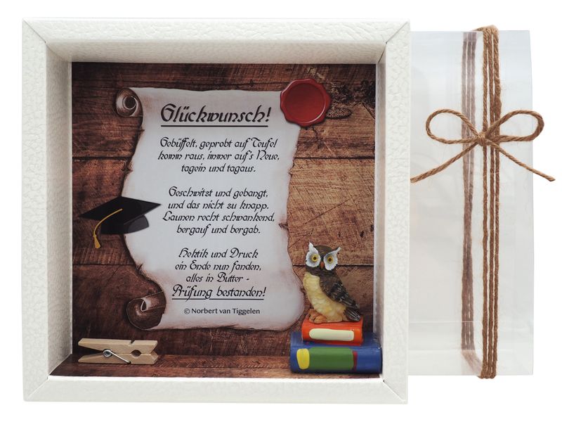 2103 Erkunde Claudia Scheligas Pinnwand „Geschenke zur Prüfung“ auf Weitere Ideen zu geschenke, abi geschenk, abschlussparty. 5,95 € * In Warenkorb 15_3639 Student Bestandene Prüfung Figur Student mit Robe aus Polyresin Nette Geschenkidee für alle mit Abitur, Master, Bachelor, Studium, etc Maße 17,5 x 11 cm 12,95 € * In Warenkorb 15_3640 Studentin Bestandene Prüfung Figur Studentin mit Robe aus Polyresin. Eine bestandene Prüfung ist immer ein Erfolgserlebnis Umso erfreulicher ist es, wenn dieser Fleiß mit einem netten Geschenk belohnt wird, wie zB mit einem Gutschein von Amazon, der sofort erstellt werden kann und innerhalb weniger Minuten zur Verfügung steht Es kann auch eine nette sms sein, über die sich der Prüfling bestimmt freut.