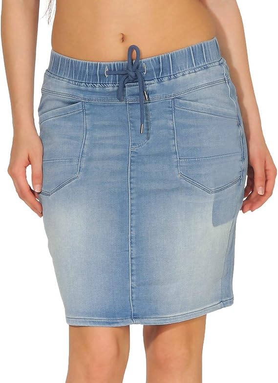 Damen Stretch Jeans Denim Rock Minirock Mit Bequemen Gummibund Coral Fashion