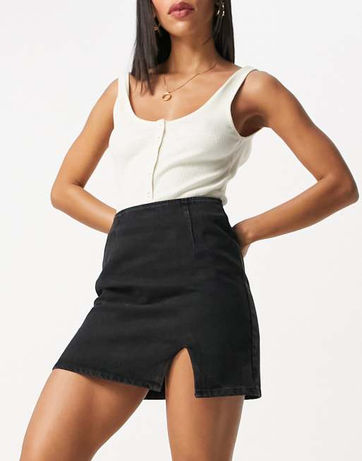 Evesham Nj Design Jeans Minirock Mit Schlitz In Schwarz Evesham Nj