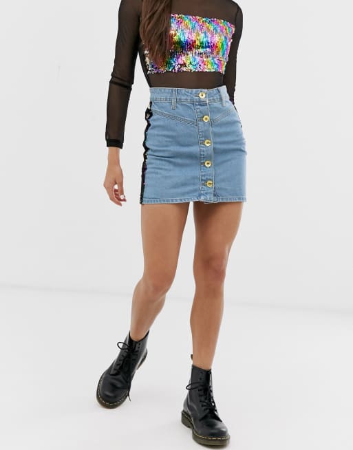 See You Never Jeans Minirock Mit Pailletten In Regenbogenfarben Evesham Nj
