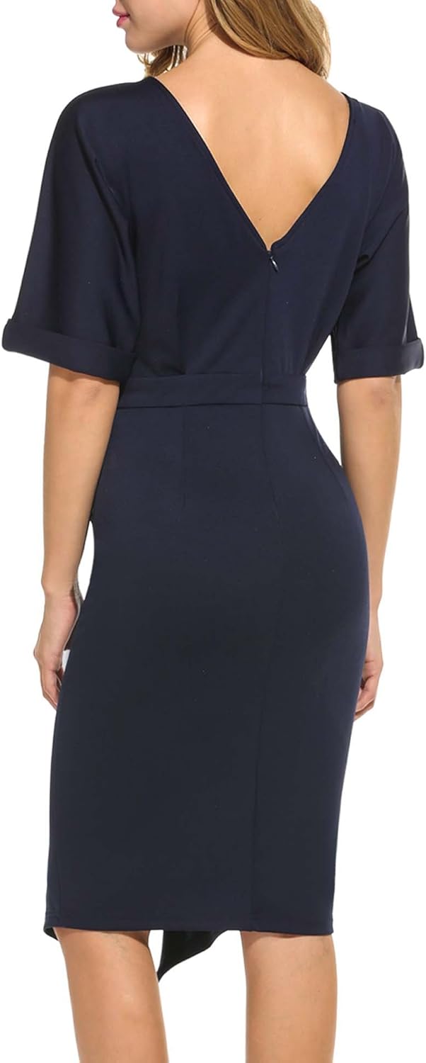 Homeyee Damen Elegantes Kurzarm Bodycon Stretch Schosschen Business Bleistift Kleid B525 Kleider Bekleidung