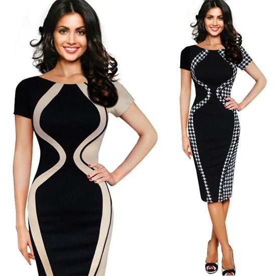 Grosshandel Casual Frauen Colorblock Kontrast Kurzarm Buro Business Karriere Mantel Bleistift Bodycon Stretch Patchwork Sommer Kleider Schlank Von Ycqz2 16 42 Auf De Dhgate Com Dhgate
