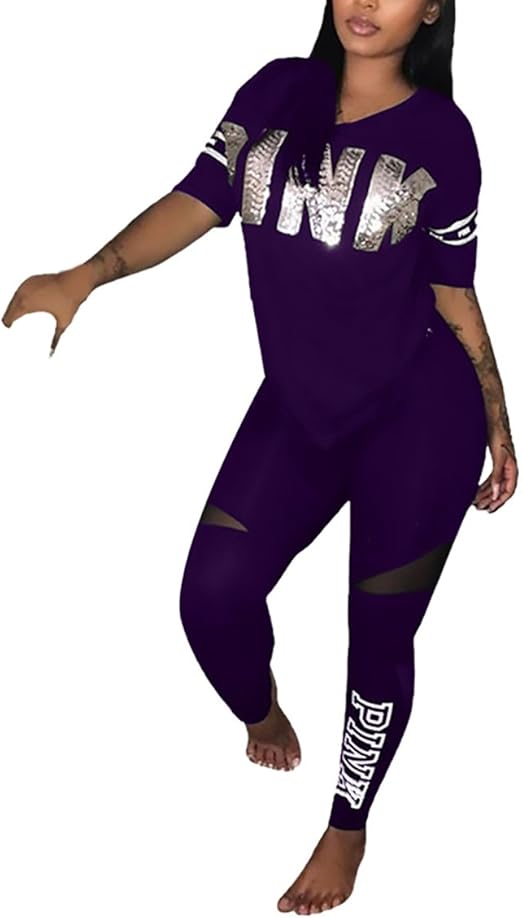 Sportbekleidung Damen Grosse Grossen Sommer V Ausschnitt Kurzarm T Shirt Elegant Trainingsanzug Classic Fashion Brief Drucken Slim Fit Uni Farben Casual Basic Hausanzug 2 Stuck Amazon De Bekleidung