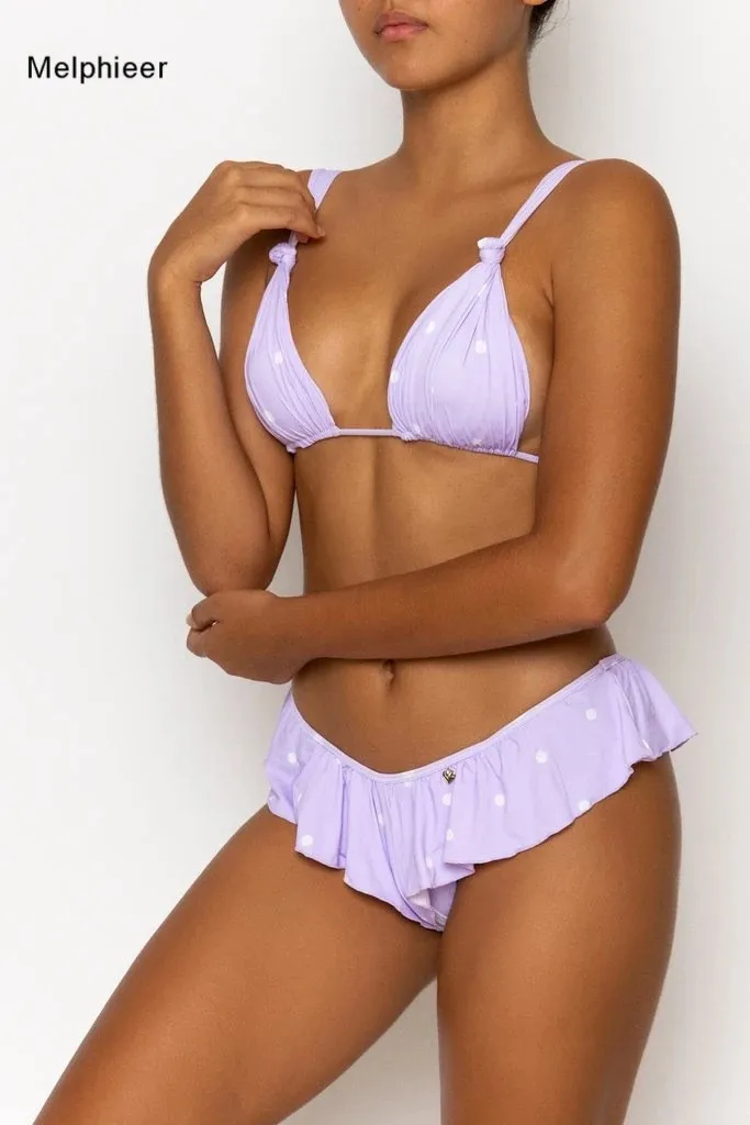 Lilac Asymmetric Bikini With Ruffles Low Rise Briefs The Are
