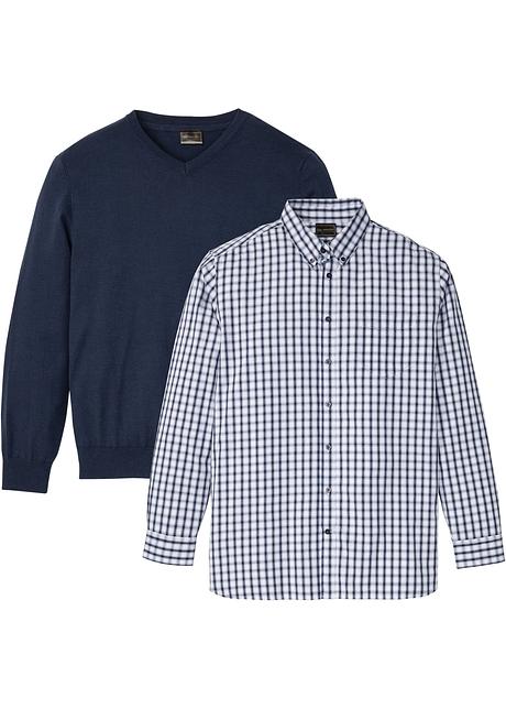 Herren Set Bestehend Aus Hemd Mit Pullover Blau Awg Mode