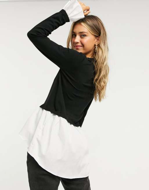Qed London 2 In 1 Pullover Mit Untergelegtem Hemd In Schwarz Asos