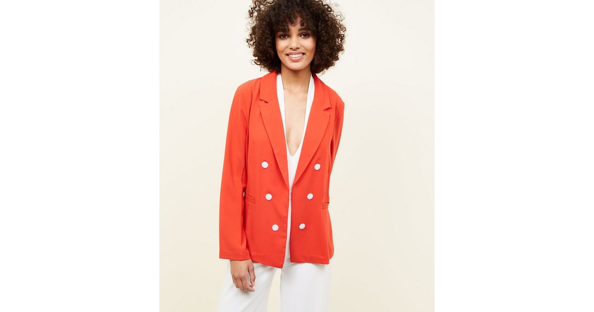 Cameo Rose Roter Zweireihiger Blazer New Look
