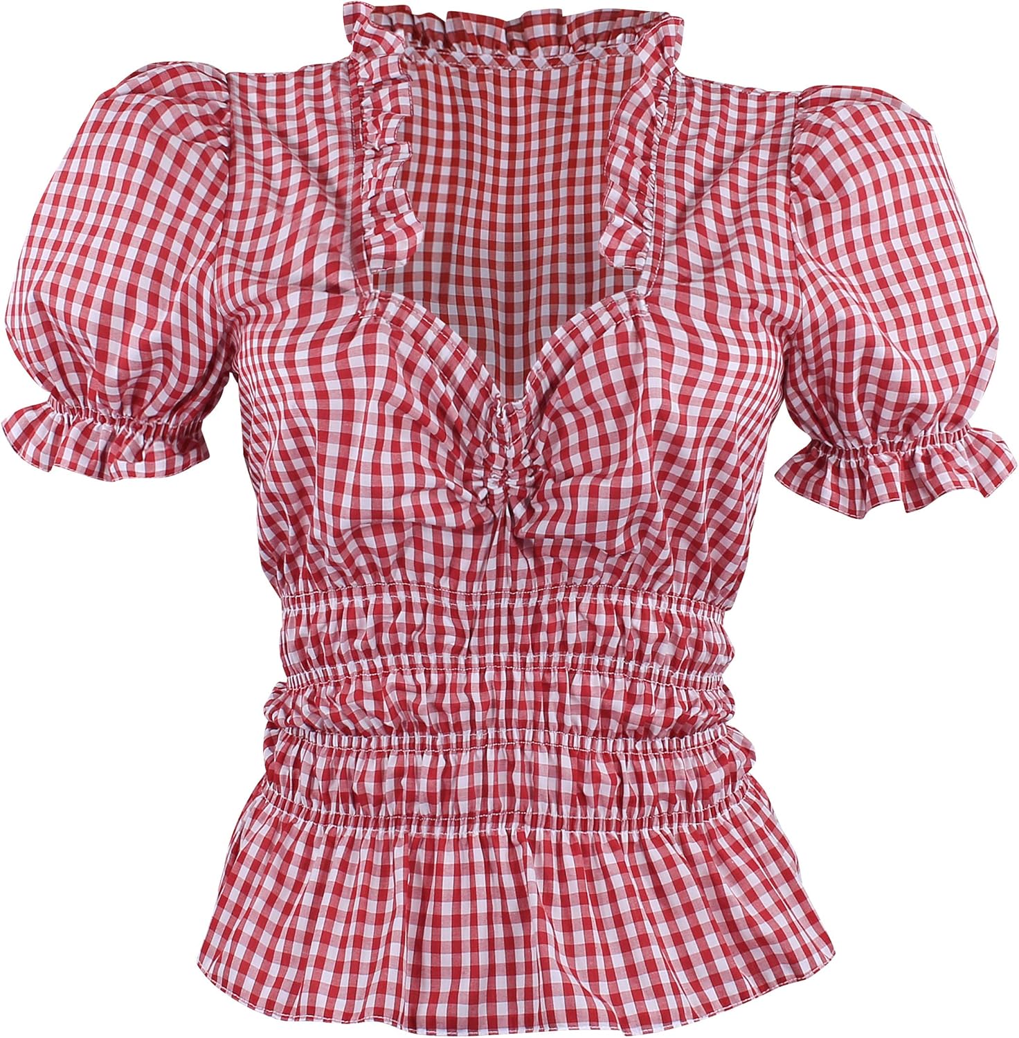 Trachtenmode Trachten Bluse Dirndlbluse Schwarz Weiss Kariert Damen Kurzarm Ruschen Spitze Kleidung Accessoires Sticisce Sredisce Si