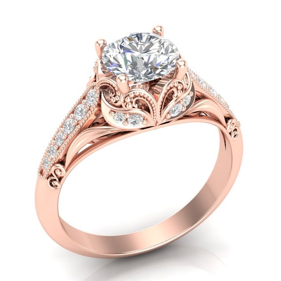 Rose Gold Vintage Engagement Ring Antique Ring Art Deco Ring Etsy