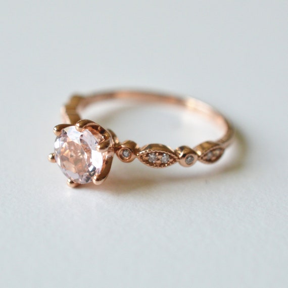 Morganite Engagement Ring Rose Gold Engagement Ring Vintage Etsy