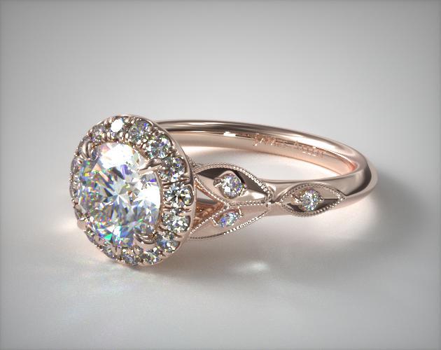 Engagement Rings Halo 14k Rose Gold Navette Leaf Halo Engagement Ring Item