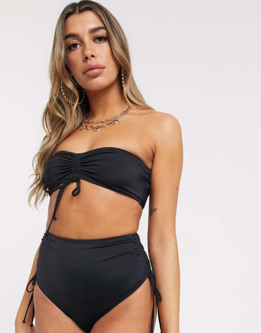 Asos Design Recycled Mix And Match Ruched Bandeau Bikini Top In Black Asos