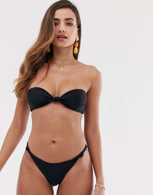 South Beach Recycled Mix And Match Knot Bandeau Bikini Top In Black Asos