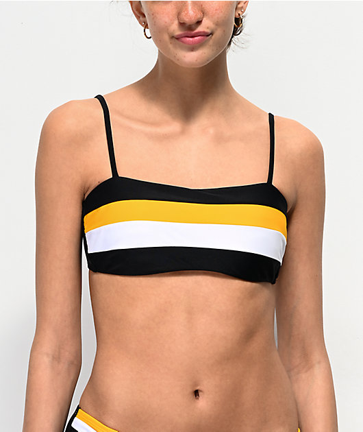 Malibu Black White Yellow Bandeau Bikini Top Zumiez