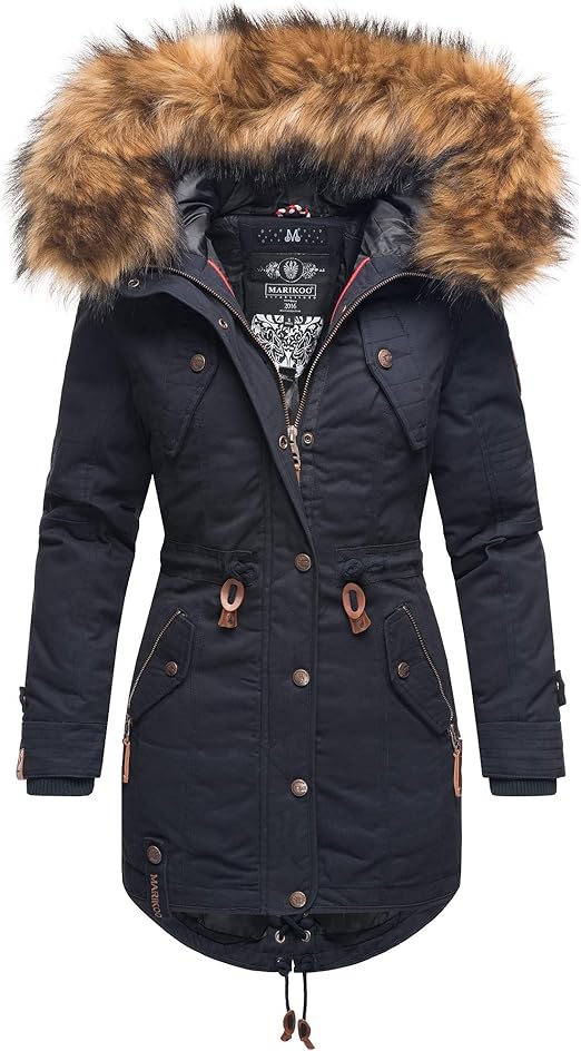 Marikoo Damen Winter Jacke Baumwoll Parka Teddyfell Mantel Laviva Prz S Navy Amazon De Bekleidung