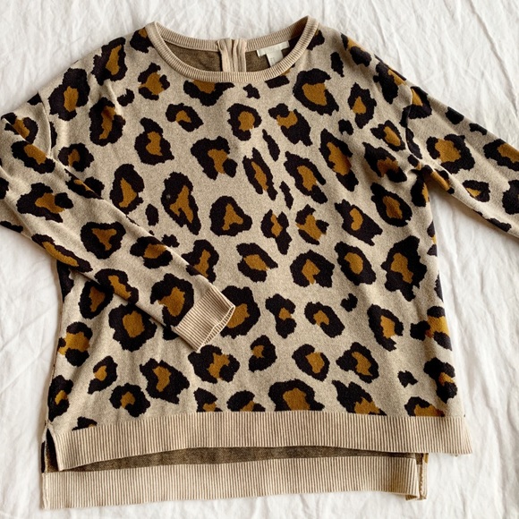 H M Sweaters Hm Leopard Print Sweater With Back Zip Size Small Poshmark