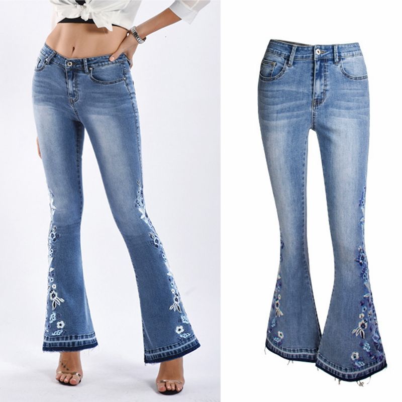 Embroidery Flare Low Rise Jeans Pants Womans Denim Push Up Plus Size Mom Jeans From Dufflecoat 35 06 Dhgate Com