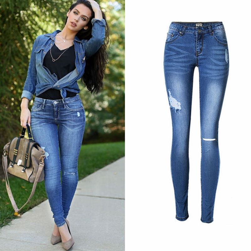 Women Denim Skinny Trousers Low Waist Jeans Destroyed Knee Holes Pencil Pants Trousers Stretch Ripped Boyfriend Mom Jeans Jeans Aliexpress