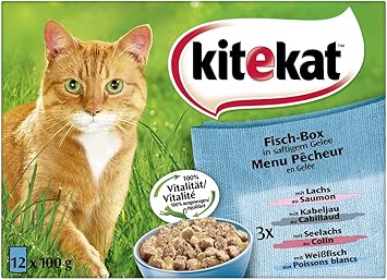 Kitekat Katzenfutter Fisch Box In Gelee 12 Stuck 12 X 100 G Amazon De Haustier