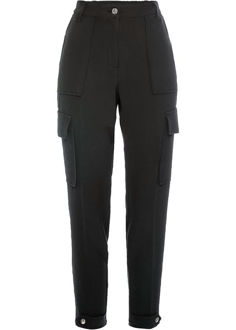 Monari Schwarze Damen Cargohose Mit Hosenkette In Schwarz